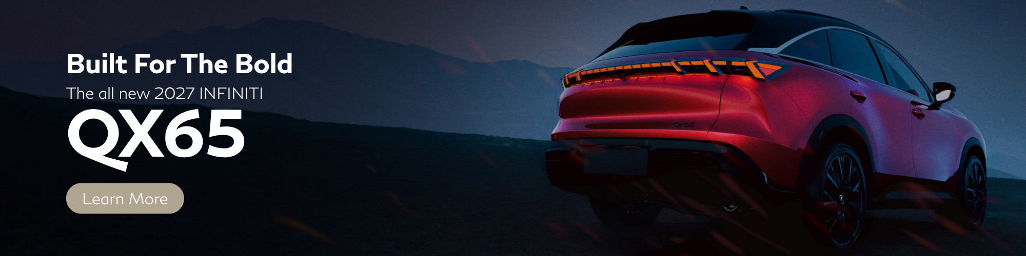The QX65 offers a more expressive design direction than many traditional midsize luxury SUVs, such as it's aerodynamic channels in the front that direct airflow through the body. These help enhance performance while showcasing a design that is both functional and striking. It also features evolved illumination, such as it's piano key LED's outside the cabin and jet inspired taillights that blend modern design with timeless elegance.